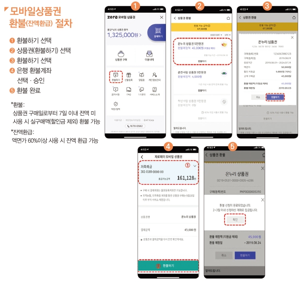액면가 60% 이상 사용 시 잔액 환급도 가능합니다.