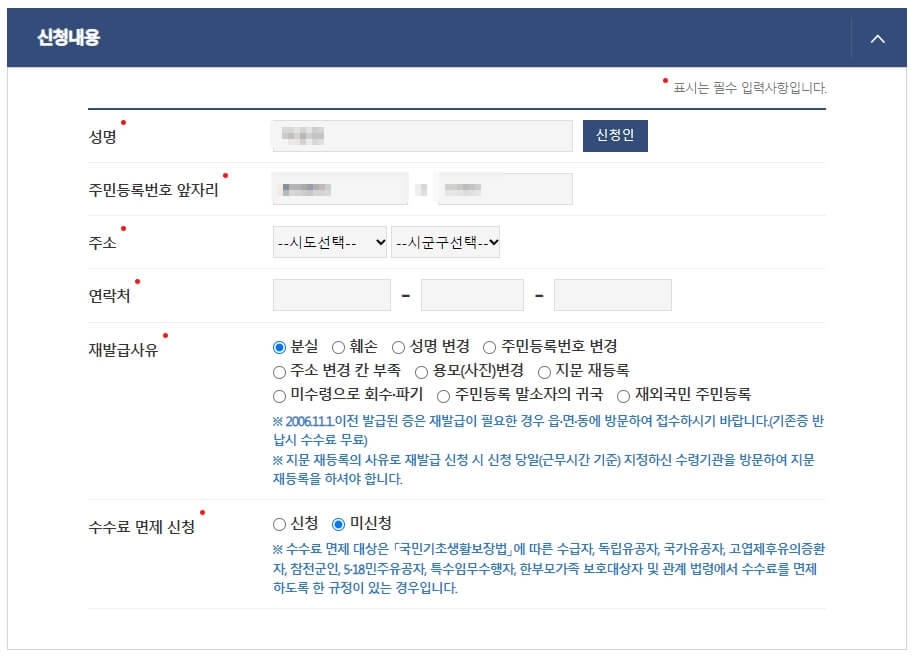 정부 24 홈페이지에서 주민등록증 재발급 신청이 가능합니다.