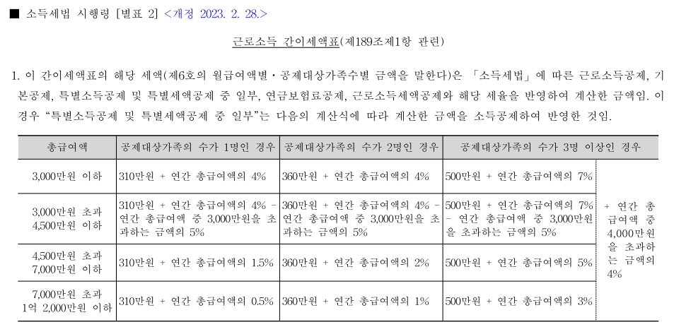 위 표는 1인기준 공제금액이며 공제대상 가족수가 늘어날 경우 변동될 수 있는 점 참고하세요.