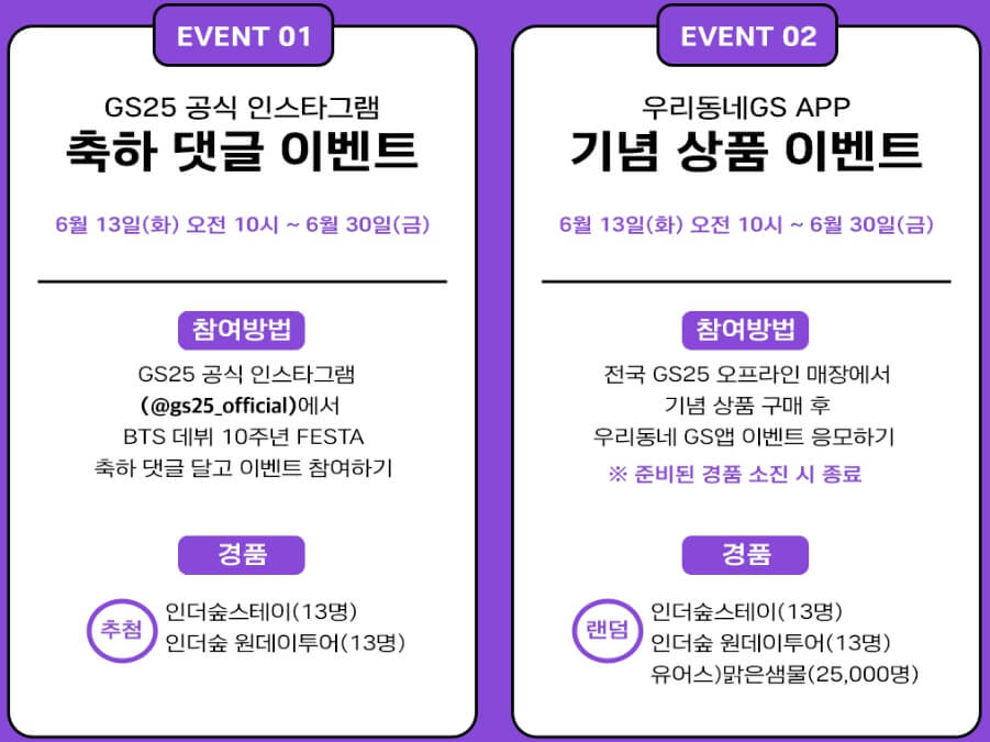GS25 공식인스타그램에서 BTS 데뷔 10주년 FESTA 축하 댓글 달고 참여
